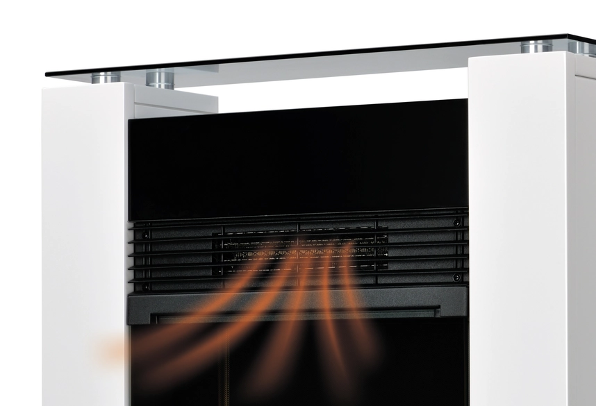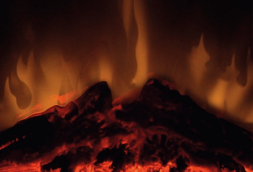 Kominek wykorzystuje technologię Optiflame®, która generuje realistyczny efekt płomienia przy użyciu podświetlanych polan LED. Efekt ognia może działać niezależnie od funkcji grzania, co pozwala korzystać z klimatu kominka przez cały rok.