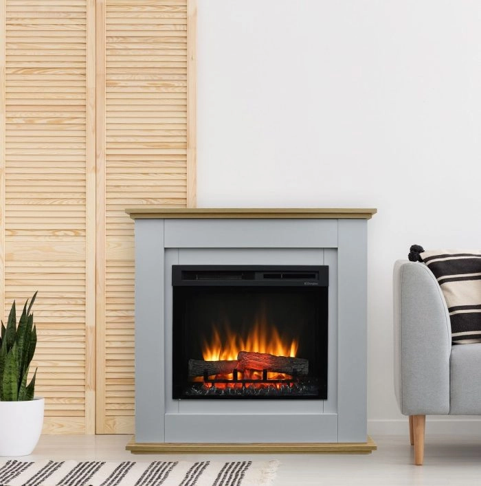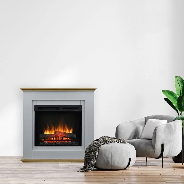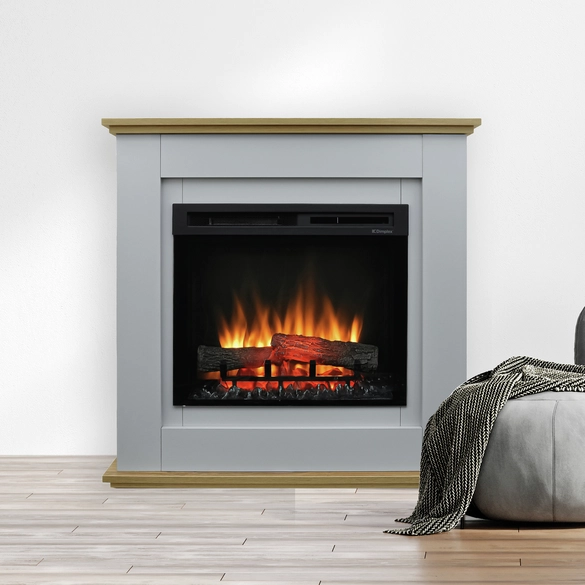Dimplex Prime to nowoczesny kominek elektryczny wolnostojący, który łączy ponadczasowy design z funkcjonalnością i realistycznym efektem płomienia. Stonowana obudowa w odcieniach szarości z dekoracyjnym akcentem drewnianym sprawia, że model doskonale komponuje się zarówno z nowoczesnymi, jak i klasycznymi wnętrzami.
