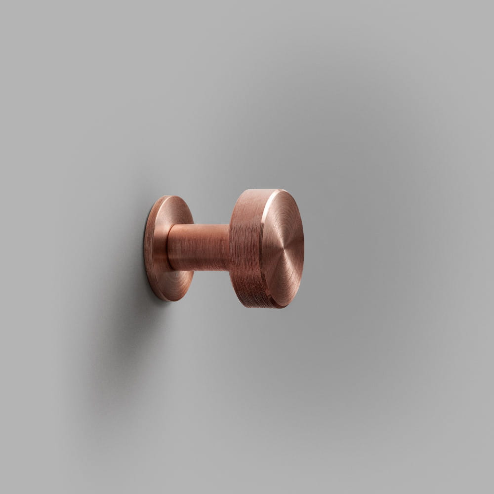 Miedziany wieszak ścienny NENA SW SHORT CU to designerski detal, który podkreśla charakter nowoczesnych mebli i zabudów.