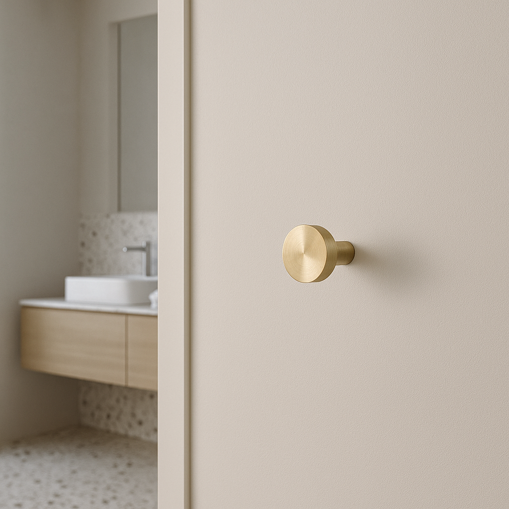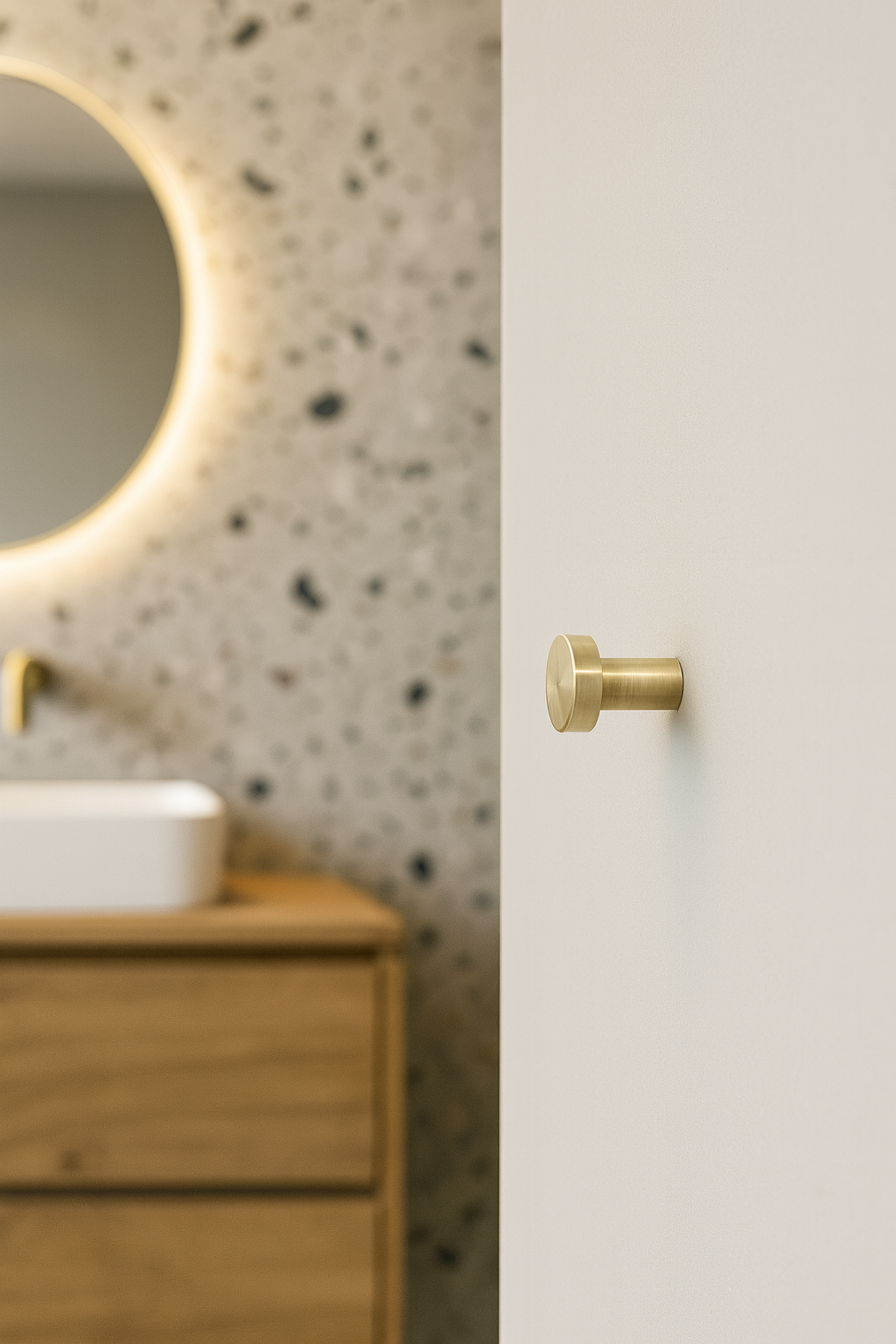 Mosiężny wieszak ścienny NENA SW mosiężny to designerski detal, który podkreśla charakter nowoczesnych mebli i zabudów.