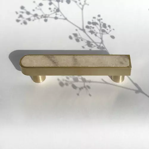 Uchwyt Marbelo z mosiądzu i różowego marmuru to nowoczesne rozwiązanie glamour, które podkreśla charakter mebli w kuchniach, łazienkach i salonach.
